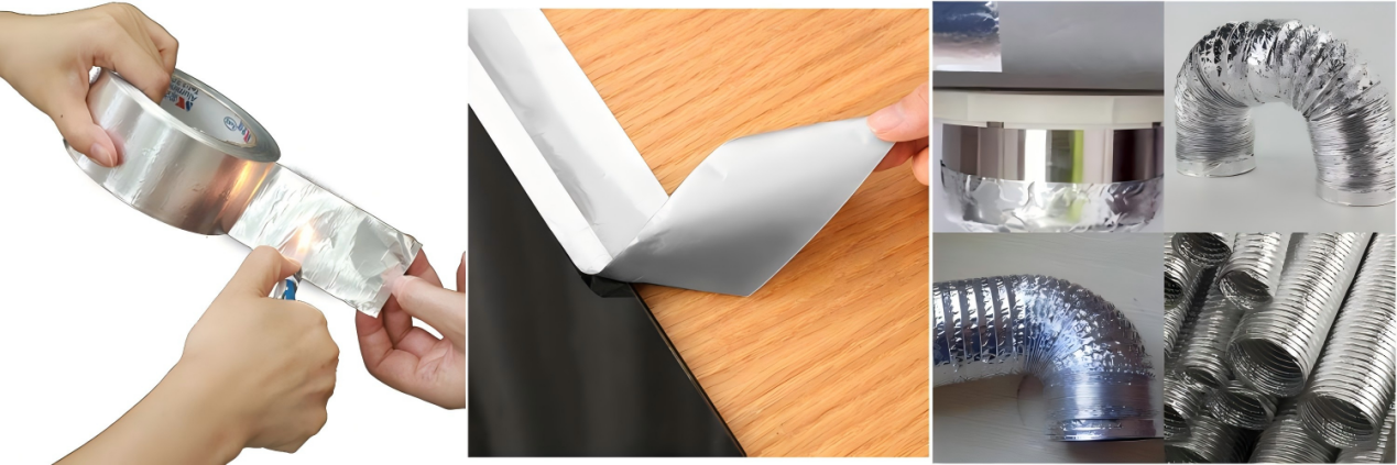 În sistemele de încălzire, ventilație și aer condiționat (HVAC), prevenirea scurgerilor de aer din conducte este esențială pentru eficiența energetică, performanța sistemului și calitatea aerului din interior. Bandă din folie de aluminiu pură pentru etanșarea conductelor HVAC este special conceput pentru acest scop. Suportul său din aluminiu oferă o barieră excelentă, în timp ce adezivul agresiv formează o etanșare permanentă flexibilă pe tablă, conducte flexibile și mantale izolatoare. Caracteristica fără căptușeală este deosebit de valoroasă pentru tehnicienii HVAC care trebuie să lucreze rapid în spații înguste, cum ar fi mansarde sau spații de acces. Banda etanșează eficient cusăturile, îmbinările și micile perforații, prevenind pierderea aerului condiționat și inhibând pătrunderea prafului sau a umezelii care ar putea degrada izolația sau favoriza creșterea mucegaiului.